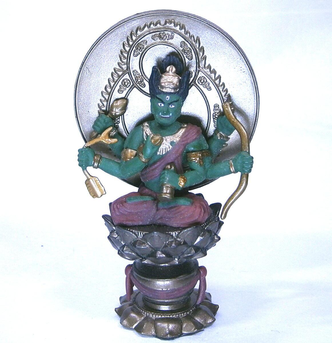 このミニフィギュアは、職人技が光る細密な造形美と静かな存在感が魅力。目を閉じ、瞑想にふける愛染明王の姿が、どこか心を癒してくれるでしょう。